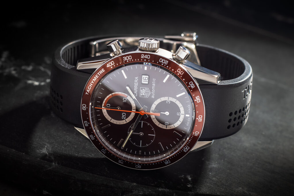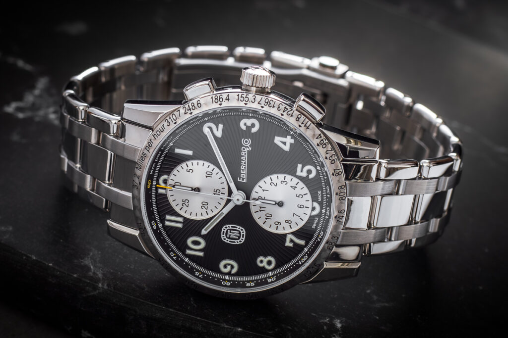 Na koniec przedmiot kolekcjonerski, ciekawostka w bardzo przyjemnej cenie. Universal Geneve było w ubiegłym wieku bardzo cenioną manufakturą, ale tak jak wiele innych bardzo ciężko przeszło kryzys kwarcowy. 2 lata temu manufaktura została wykupiona przez Breitlinga, i jest obecnie na etapie „wskrzeszania”, co zwróciło uwagę wielu kolekcjonerów, a starsze egzemplarze, na przykład jak ten prezentowany, zaczęły cieszyć się wśród nich dużym powodzeniem. Omawiany zegarek jest dosłownie przepełniony ciekawymi i przydatnymi komplikacjami: kalendarz na godzinie trzeciej, chronograf, i worldtimer na obrotowym bezelu. Zegarek jest wodoszczelny na 100 metrów, więc śmiało można w nim pływać, a jego mechanizm ma certyfikat COSC, co gwarantuje jego bardzo wysoką dokładność.