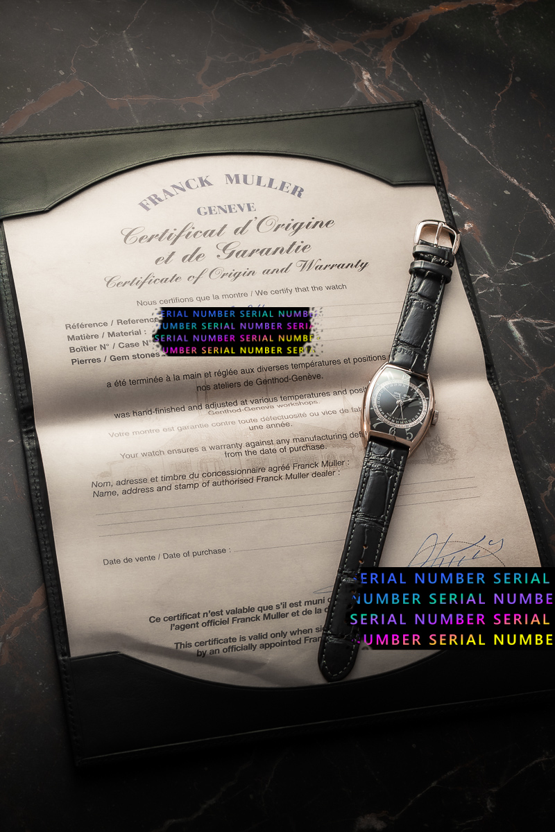 Watch comes complete with original FRANCK MULLER case and documents “purchase date not available”