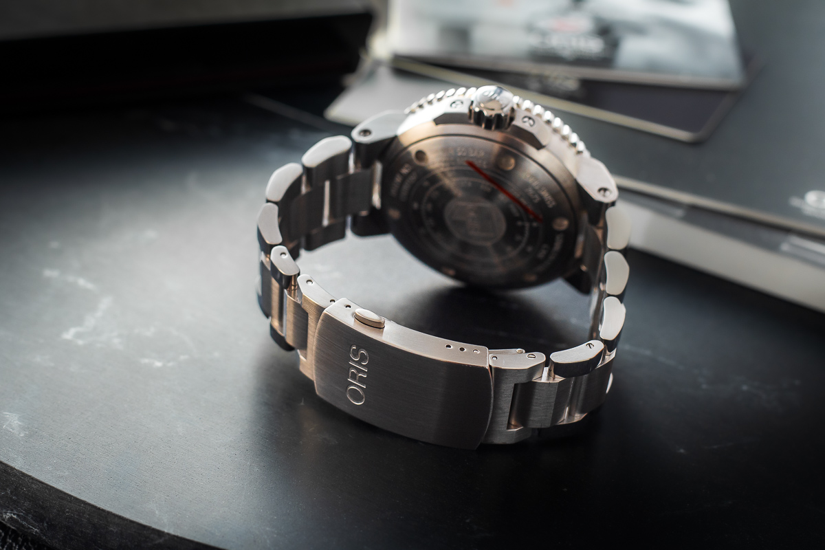 original Oris. Made of stainless steel. Fastened with an original Oris steel single-clasp buckle.