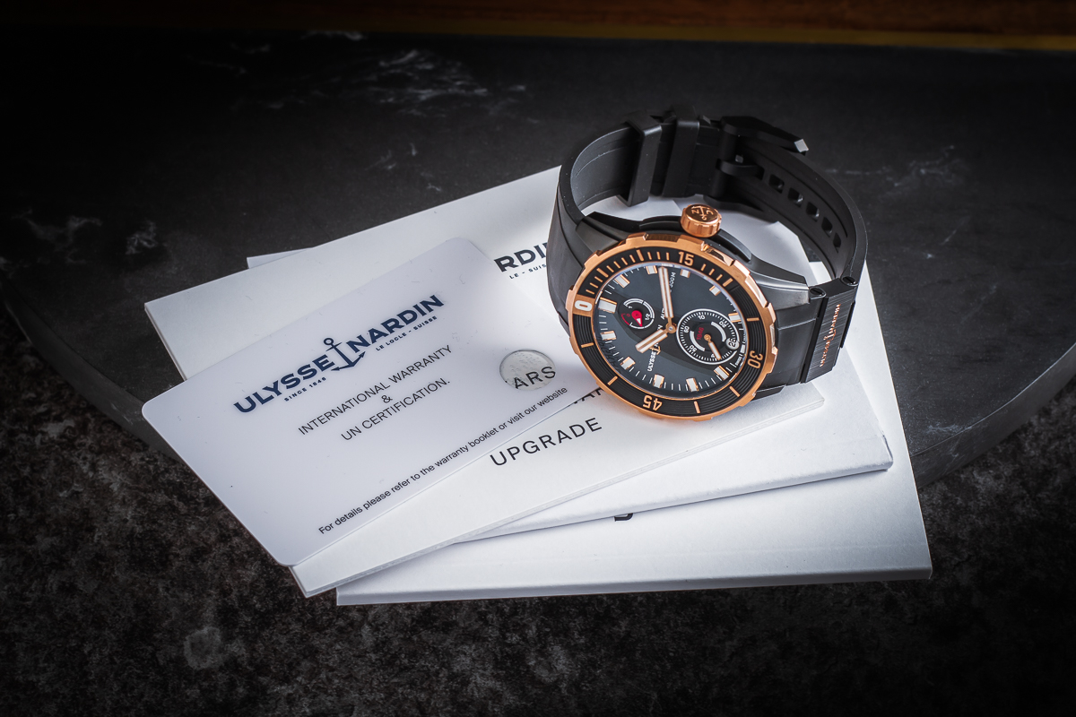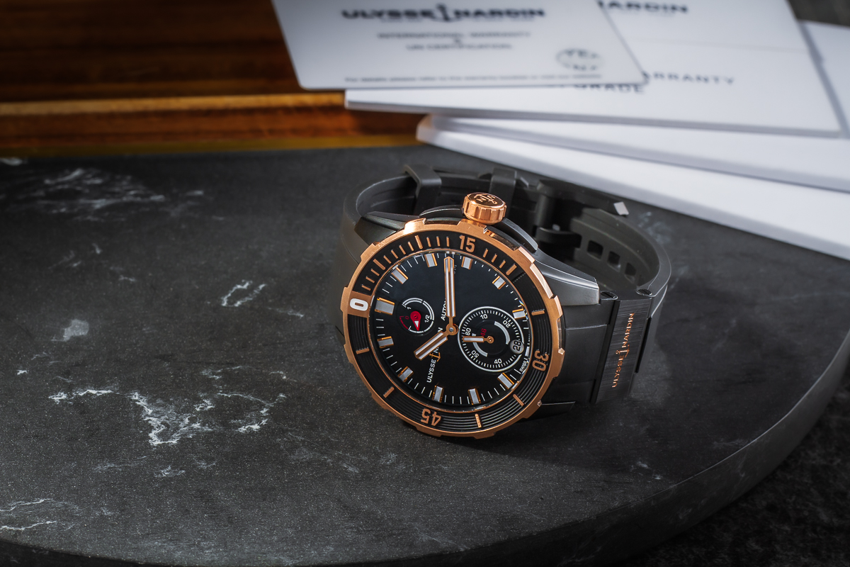 Watch comes complete with original ULYSSE NARDIN case and documents
