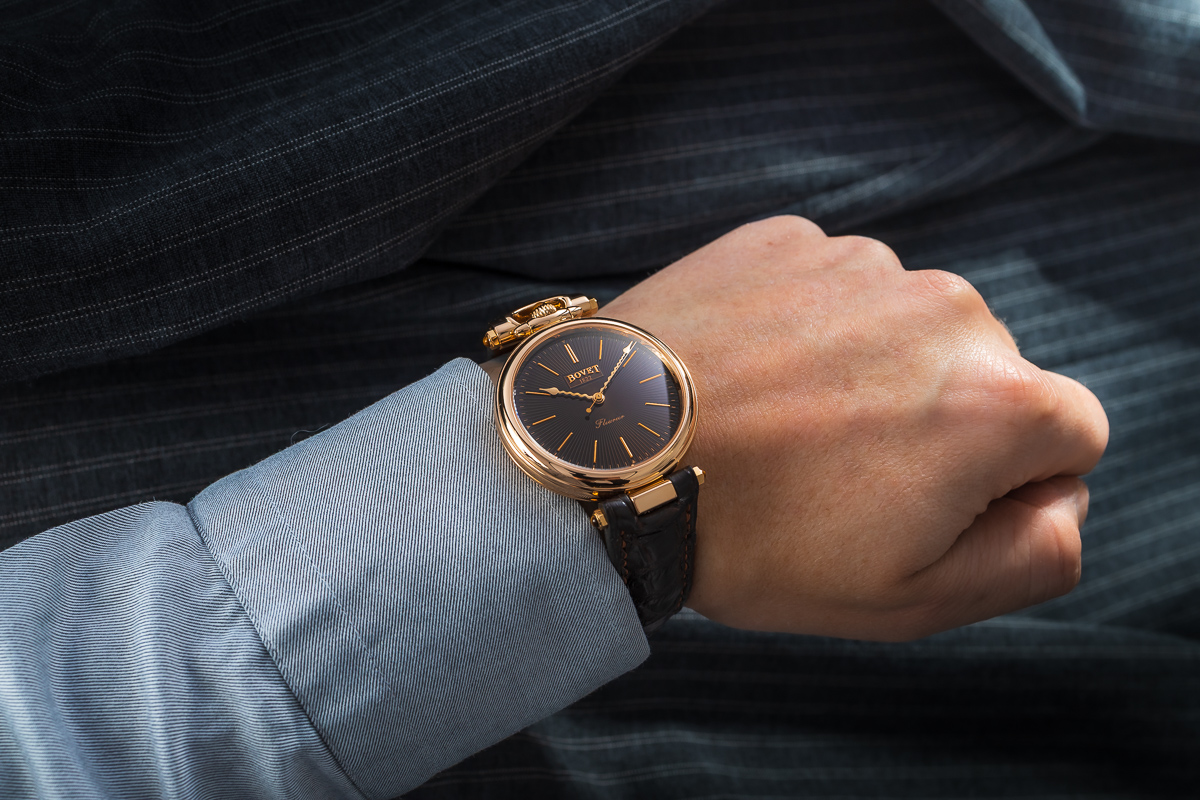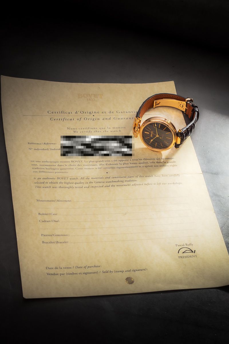 Zegarek w komplecie z oryginalnym etui Bovet oraz dokumentami 'brak daty zakupu’