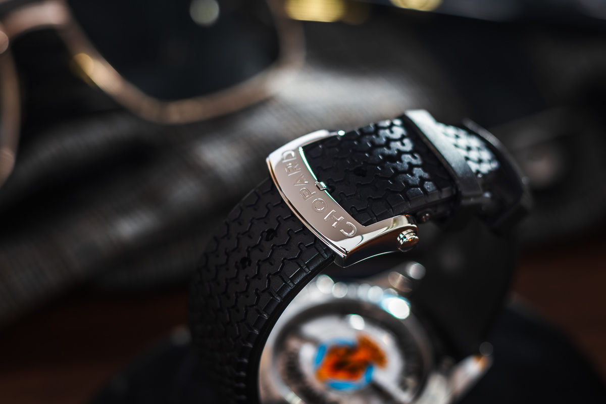 oryginalny Chopard. Wykonany z kauczuku. Zapinany oryginalnym, stalowym zapięciem motylkowym Chopard.