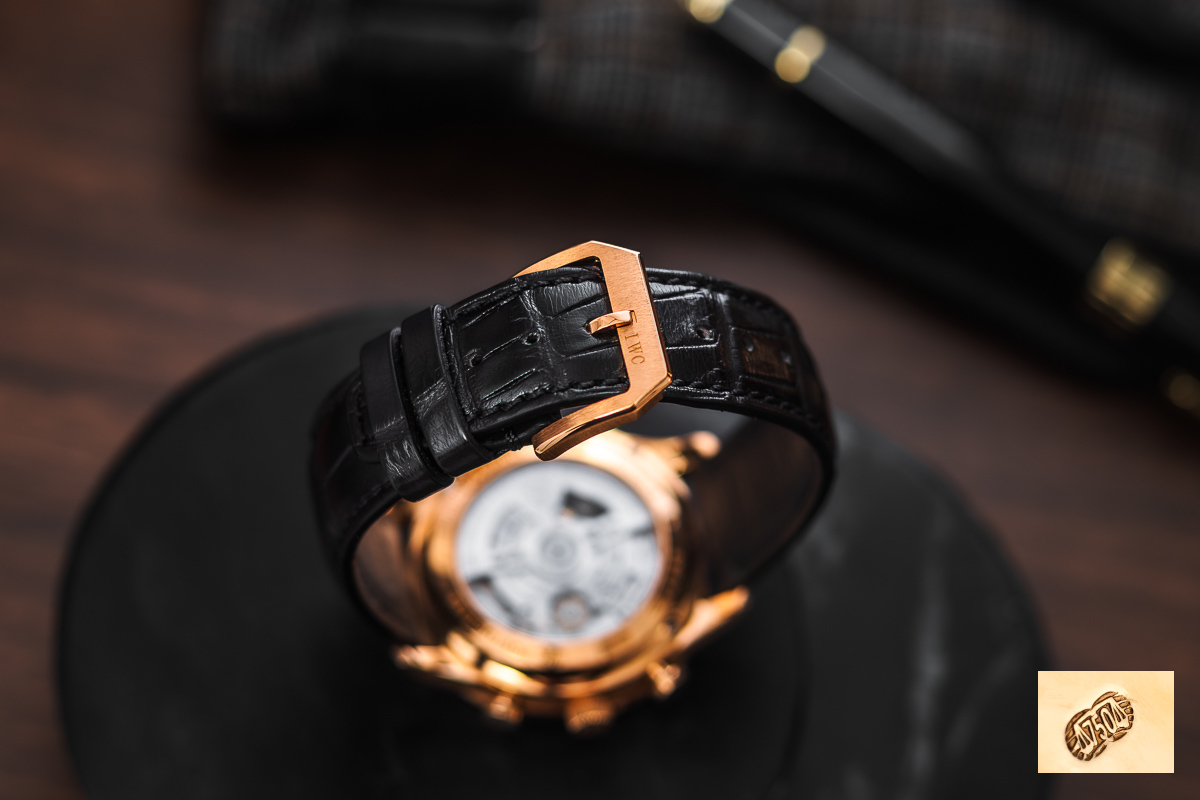 oryginalny IWC. Wykonany z naturalnej skóry. Zapinany oryginalnym, złotym zapięciem klamerkowym IWC.