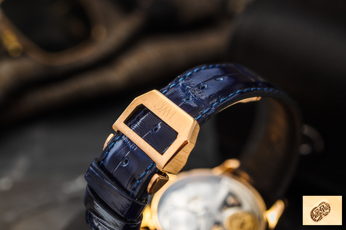 oryginalny IWC. Wykonany z naturalnej skóry. Zapinany oryginalnym, złotym zapięciem na jeden zatrzask IWC.