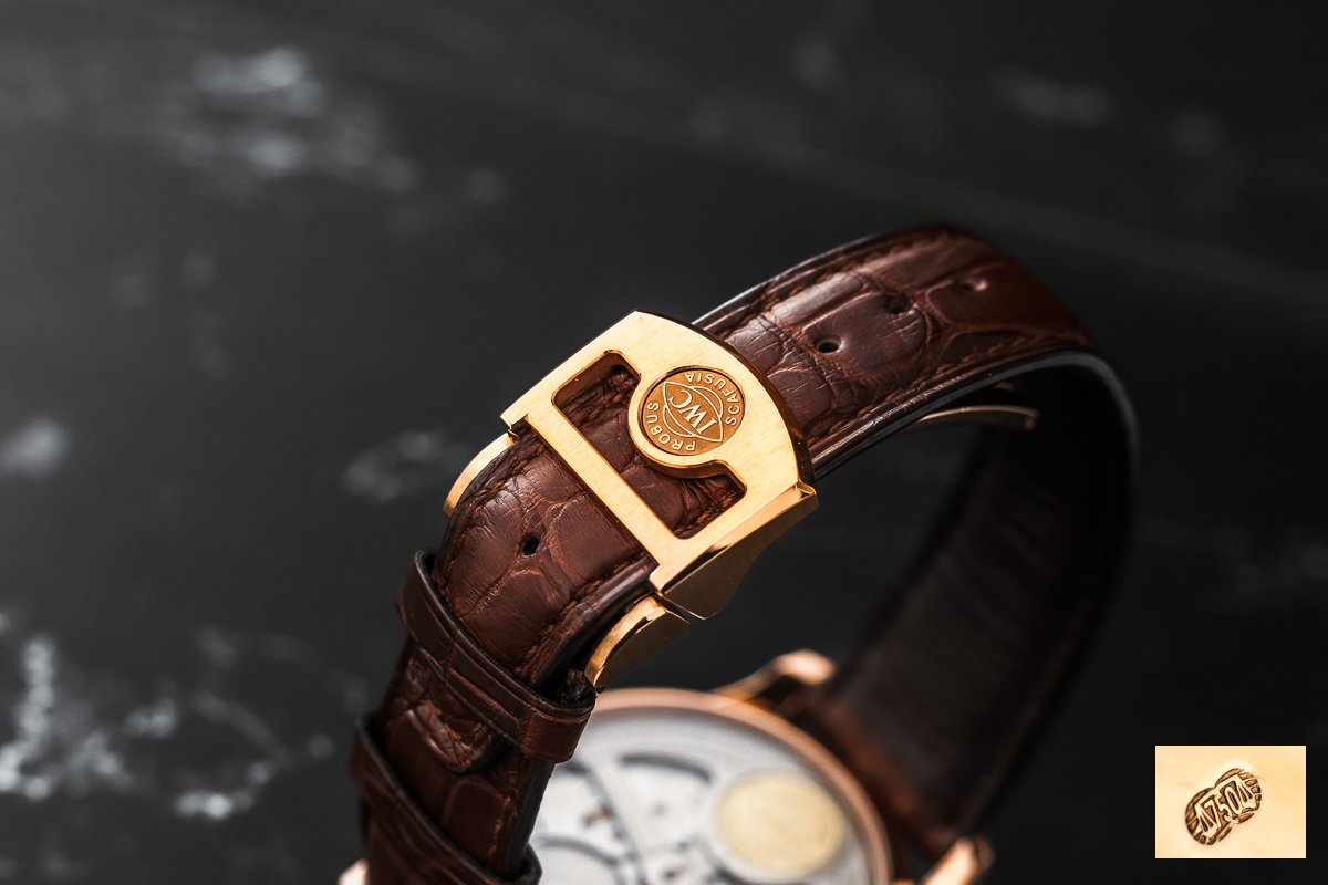 oryginalny IWC. Wykonany z naturalnej skóry. Zapinany oryginalnym, złotym zapięciem na jeden zatrzask IWC.