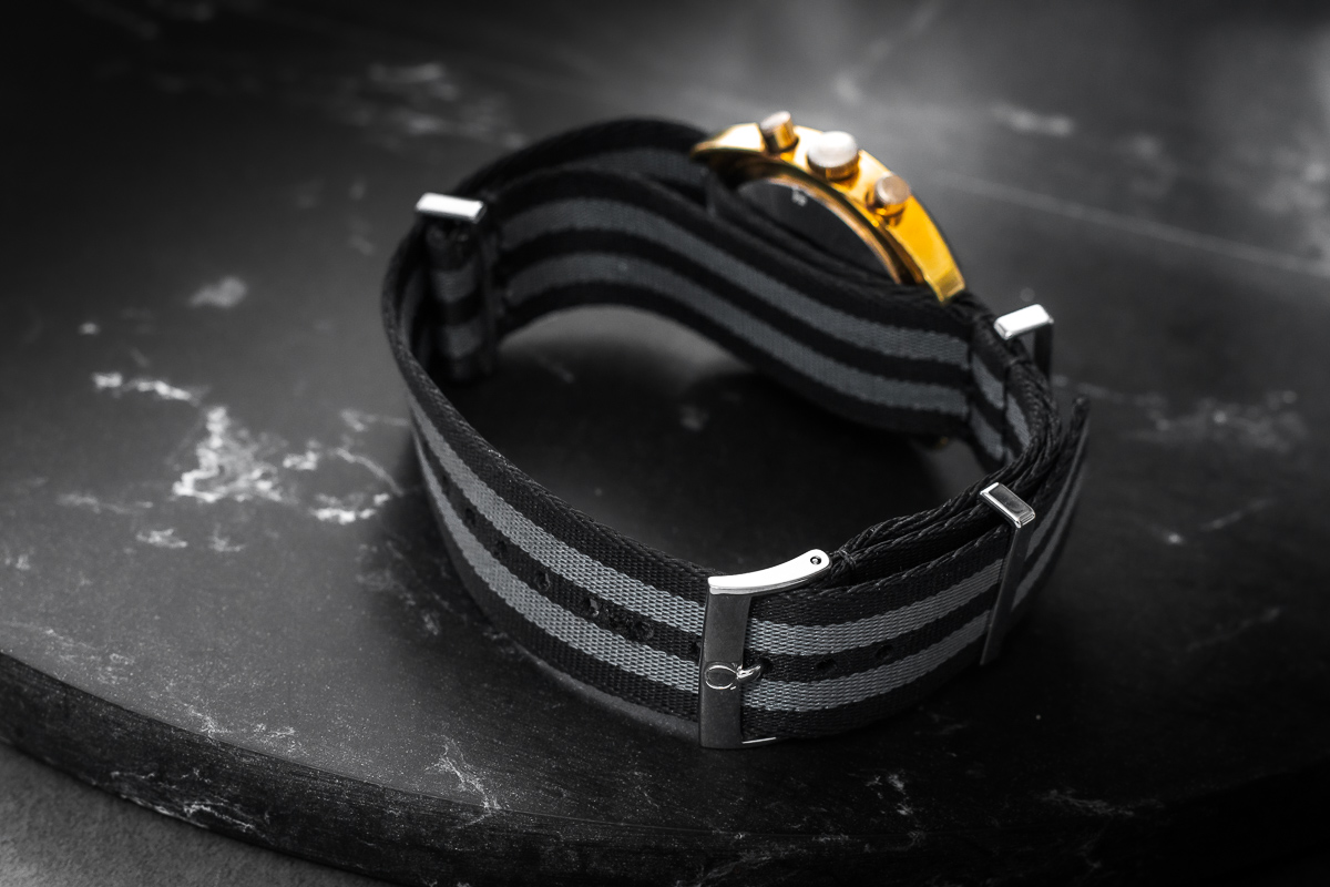 oryginalny Omega, NOWY. Wykonany z materiału tekstylnego. Zapinany oryginalnym, stalowym zapięciem klamerkowym Omega.
