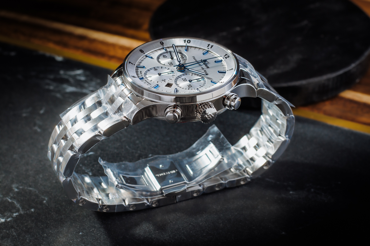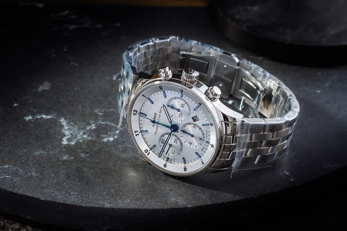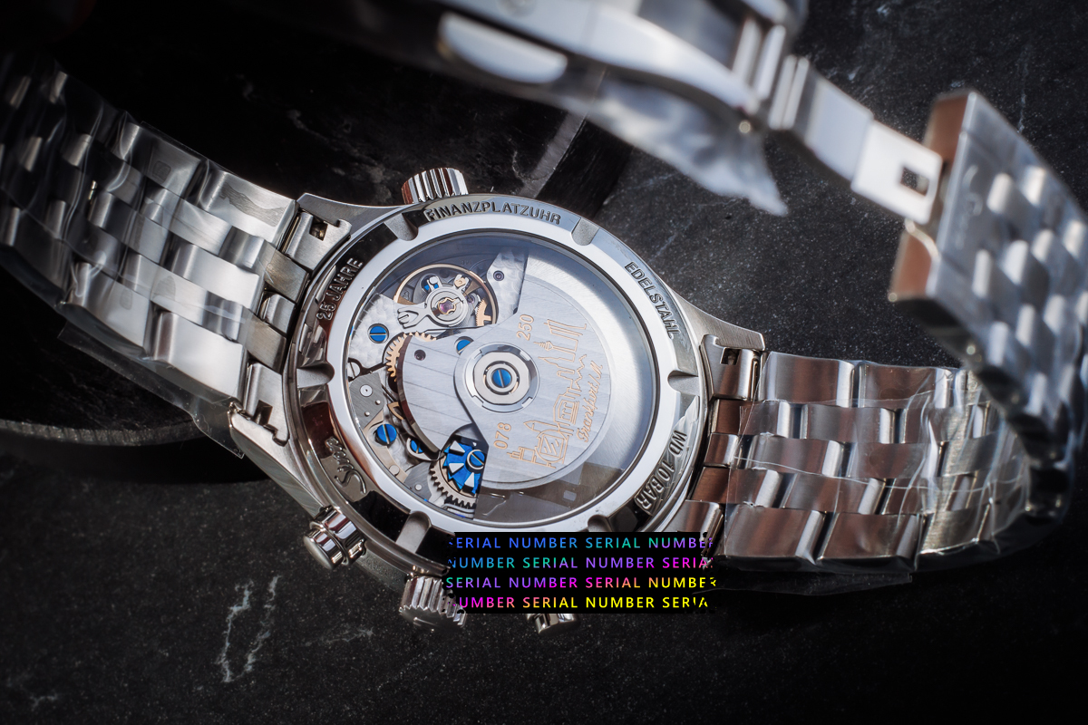 Przez przezroczysty dekiel koperty wykonany z szafirowego szkła można podziwiać kunsztowną mechanikę chronografu z kołem kolumnowym – wyrafinowanej komplikacji, której tradycja sięga połowy XIX wieku – oraz grawerunek panoramy Frankfurtu na rotorze z indywidualnym numerem limitowanej edycji. Wskazanie trzech stref czasowych w formacie 12-godzinnym umożliwia śledzenie czasu na całym świecie, co jest nieocenione w zglobalizowanej i połączonej sieciami gospodarce. Pomimo swojego estetycznego wyglądu, zegarek jest również niezwykle trwały: jest wodoodporny, odporny na ciśnienie do 10 barów i odporny na niskie ciśnienie.