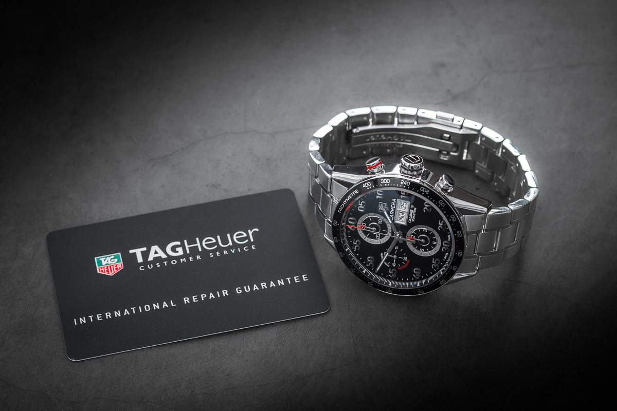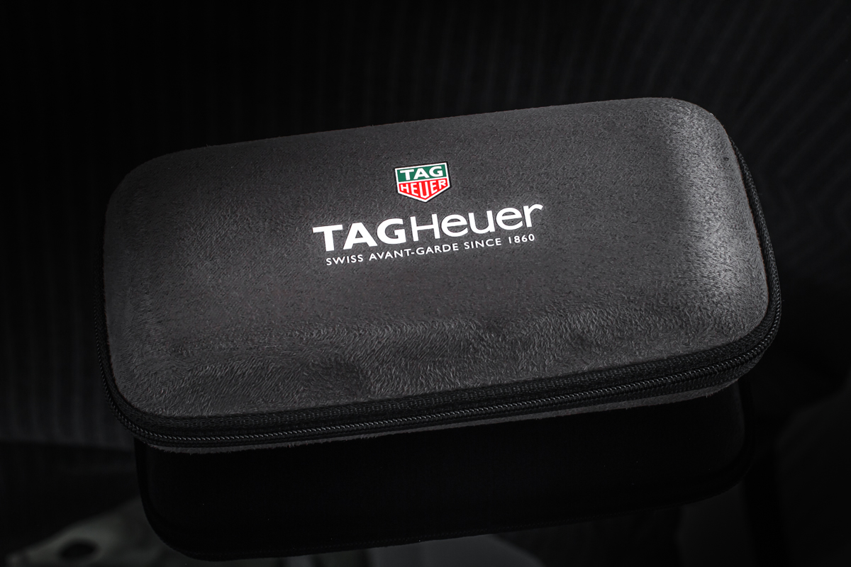Zegarek w komplecie z oryginalnym etui serwisowym TAG Heuer oraz kartą potwierdzającą serwis zegarka w 2016 roku