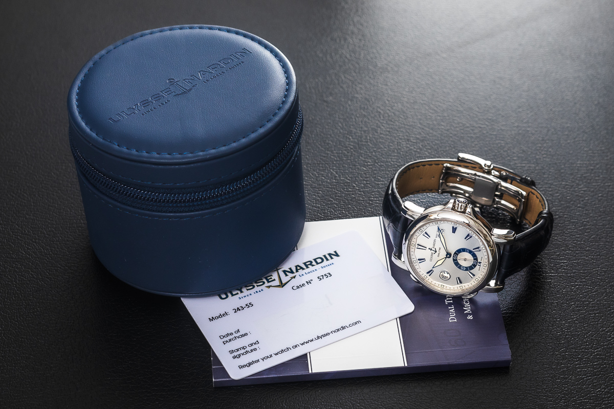 Zegarek w komplecie z oryginalnym etui serwisowym Ulysse Nardin oraz dokumentami 'brak daty zakupu’