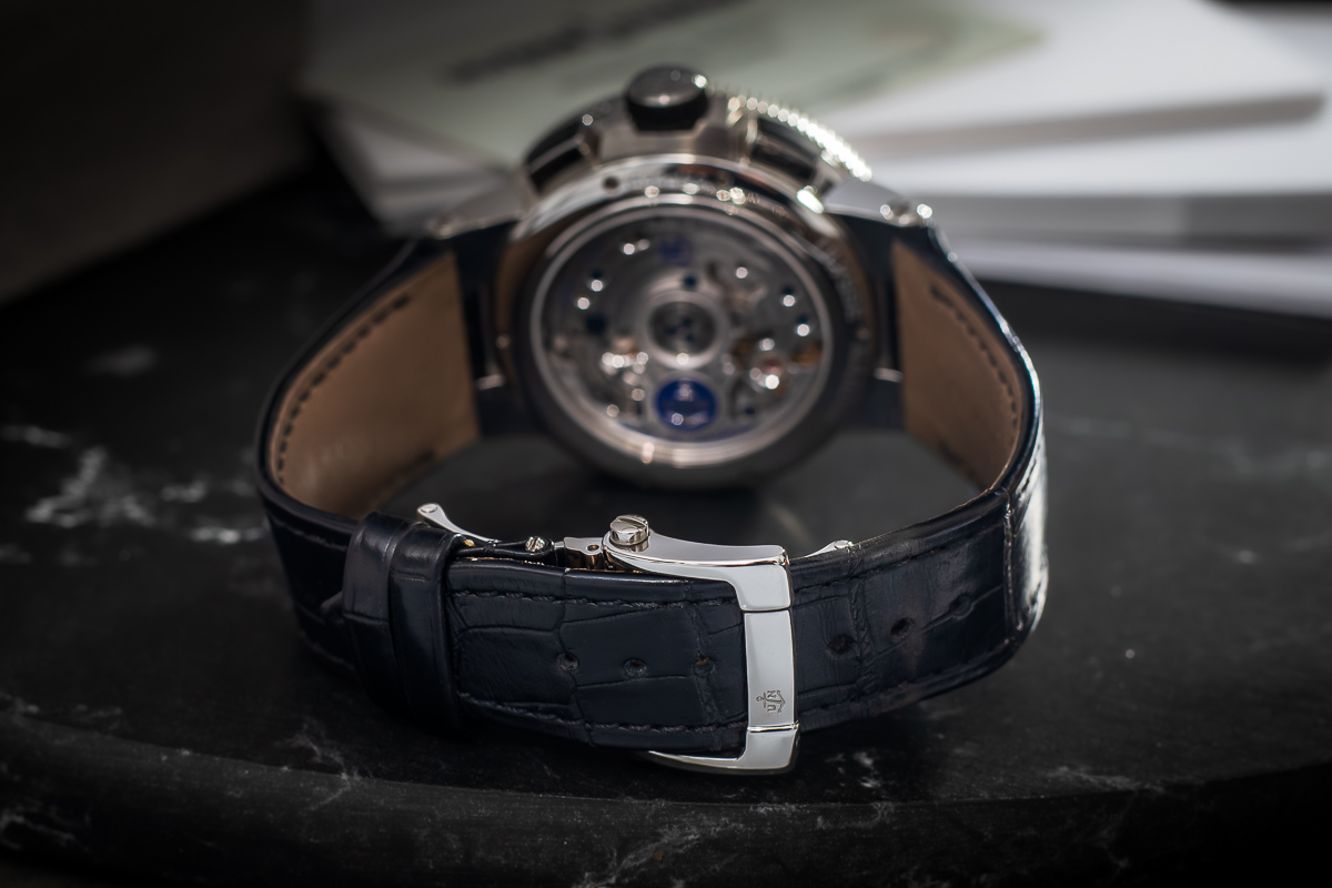 oryginalny Ulysse Nardin. Wykonany z naturalnej skóry. Zapinany oryginalnym, stalowym zapięciem motylkowym Ulysse Nardin.