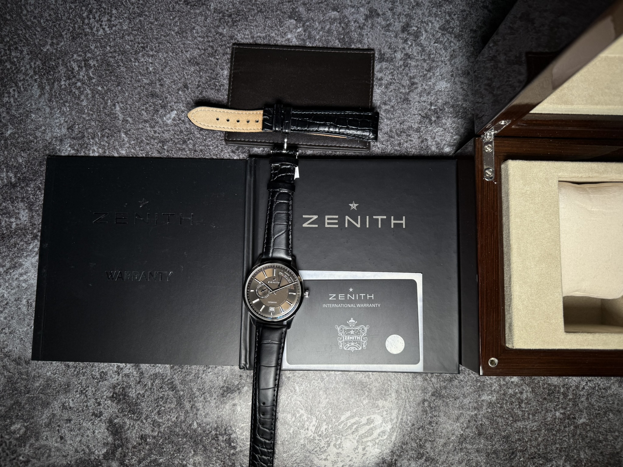 Zegarek w komplecie z oryginalnym etui ZENITH oraz dokumentami '2017′